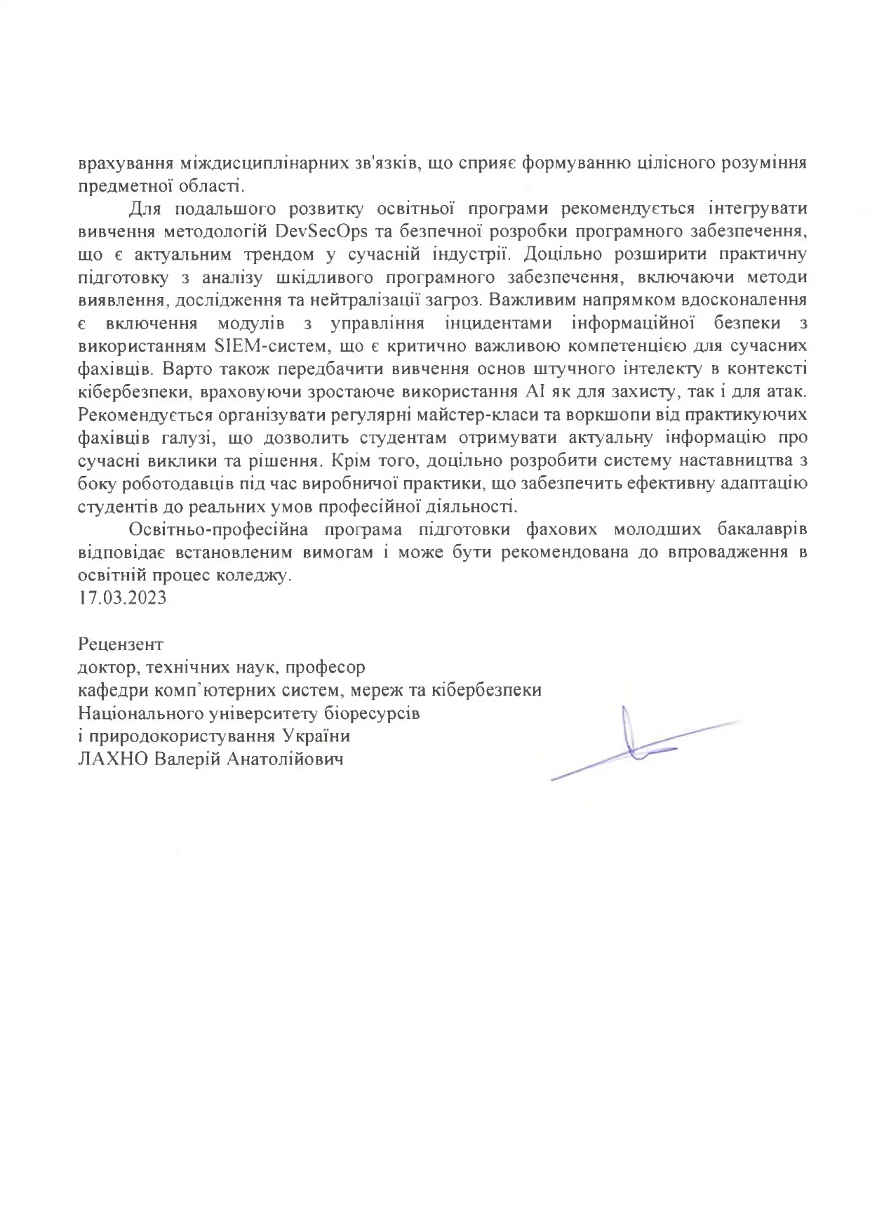 Рецензія НУБіП – К та ЗІ.pdf_2 Головна ПРО КОЛЕДЖ Структурні підрозділи Навчальна частина Проєкти освітньо-професійних програм ОПС «Фаховий молодший бакалавр» Кібербезпека та захист інформації
