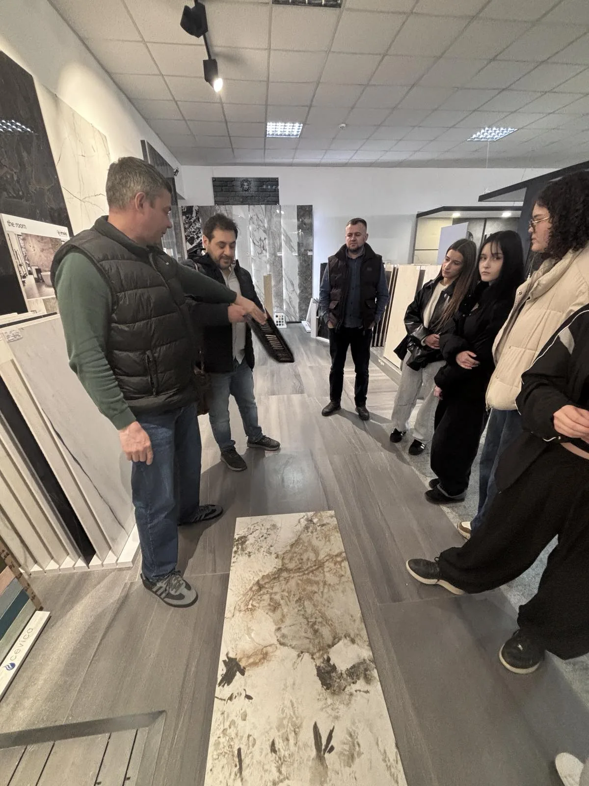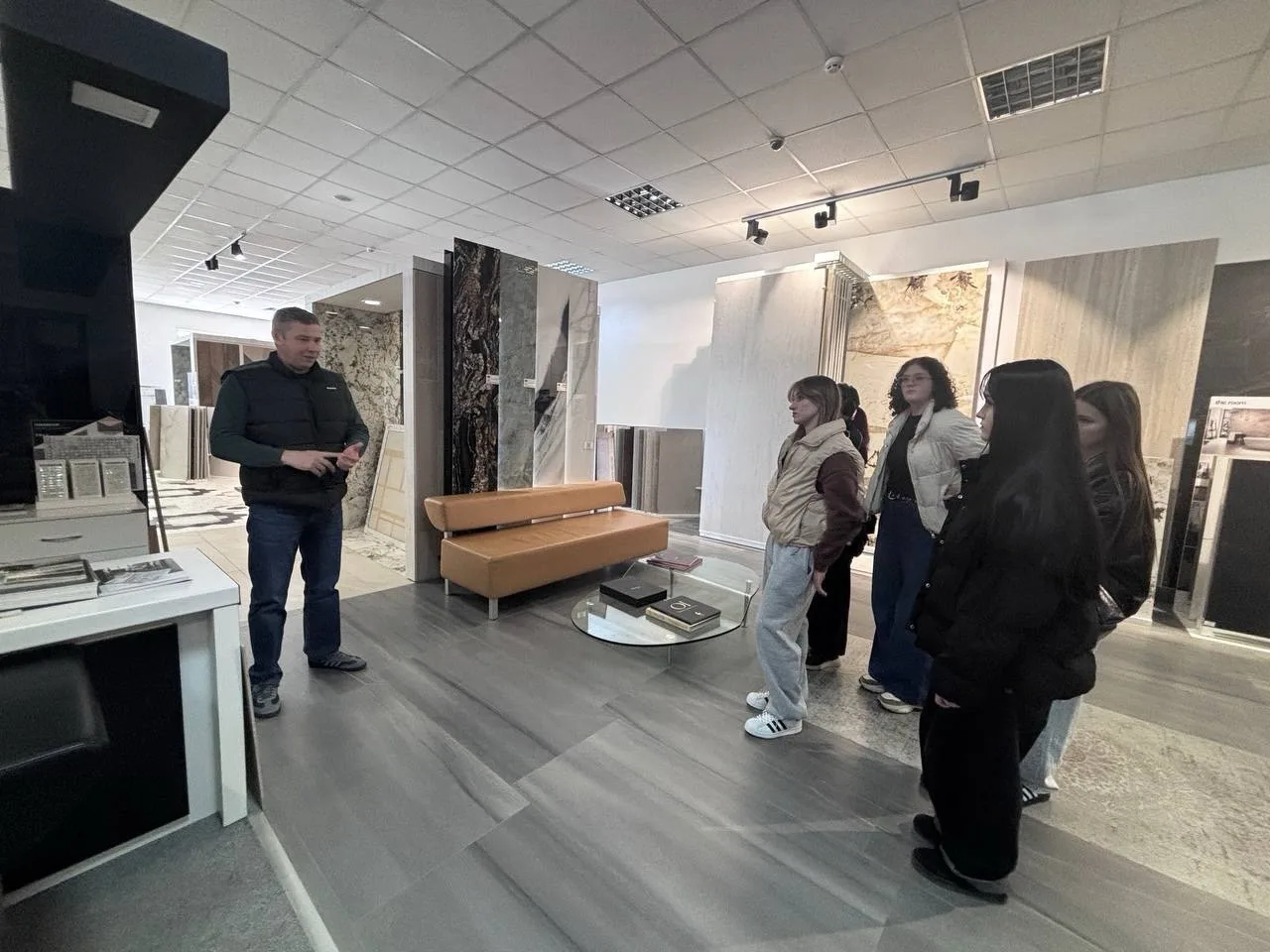Студенти будівельного відділення в супроводі викладачів циклової комісії будівельних дисциплін 25 березня  2026 року відвідали виставкову залу салону керамічної плитки та сантехніки “Світ Кераміки”, Ексклюзивний асортимент салону представляє необмежені можливості для вибору, тому студенти ОПП Опорядження будівель і споруд та будівельний дизайн, з огляду на особисті побажання майбутнього замовника, його уявлення про інтер’єр, стилістичну концепцію дизайну, умови експлуатації керамічної плитки і бюджет проекту, зможуть оперативно і якісно підібрати необхідні матеріали та вироби для дизайн-проекту. Директор, Андрій ПИЛИПЮК, провів цікаву та інформативну екскурсію по виставкових залах салону. У елітному салоні CERAMIC FASHION, на площі 800м2 на двох поверхах представлена керамічна плитка та сантехніка італійських, іспанських, турецьких та індійських виробників. Усі фабрики представлені у салоні у форматі шоу-румів  – імітацій жилих інтер’єрів, що дає можливість побачити як виглядатиме плитка та сантехніка у інтер’єрі.