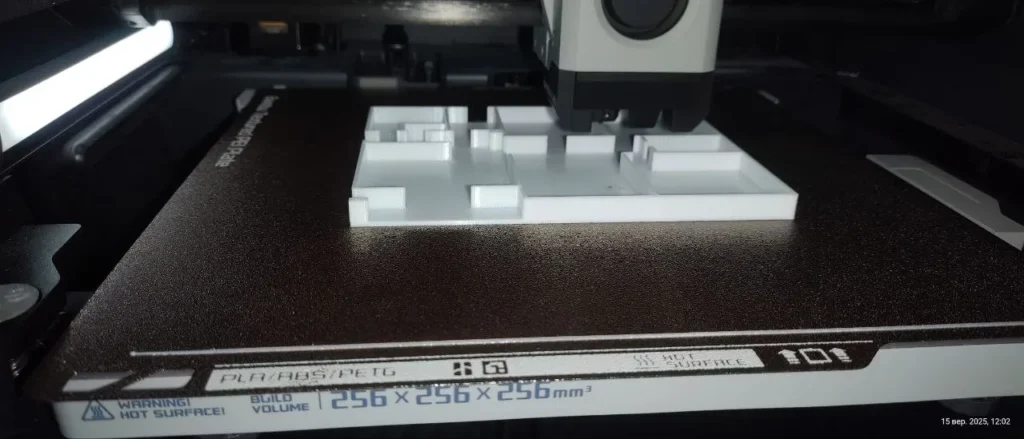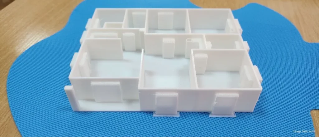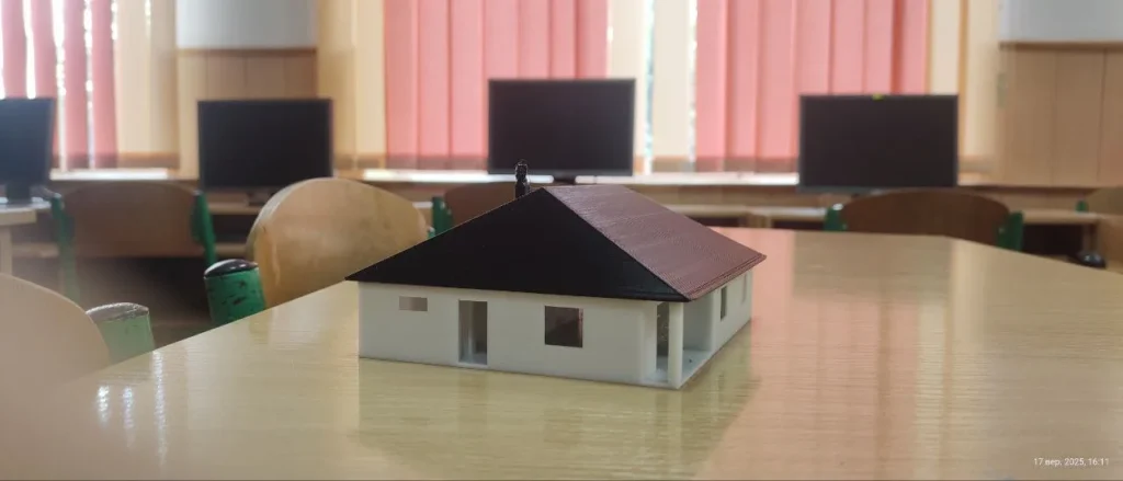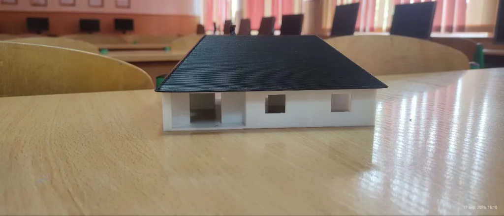 Підсумковим елементом нашого заняття було виконано друк 2 деталей житлового будинку, фундаменту з коробкою та покрівлі будинку, які Ви можете побачити на світлинах.