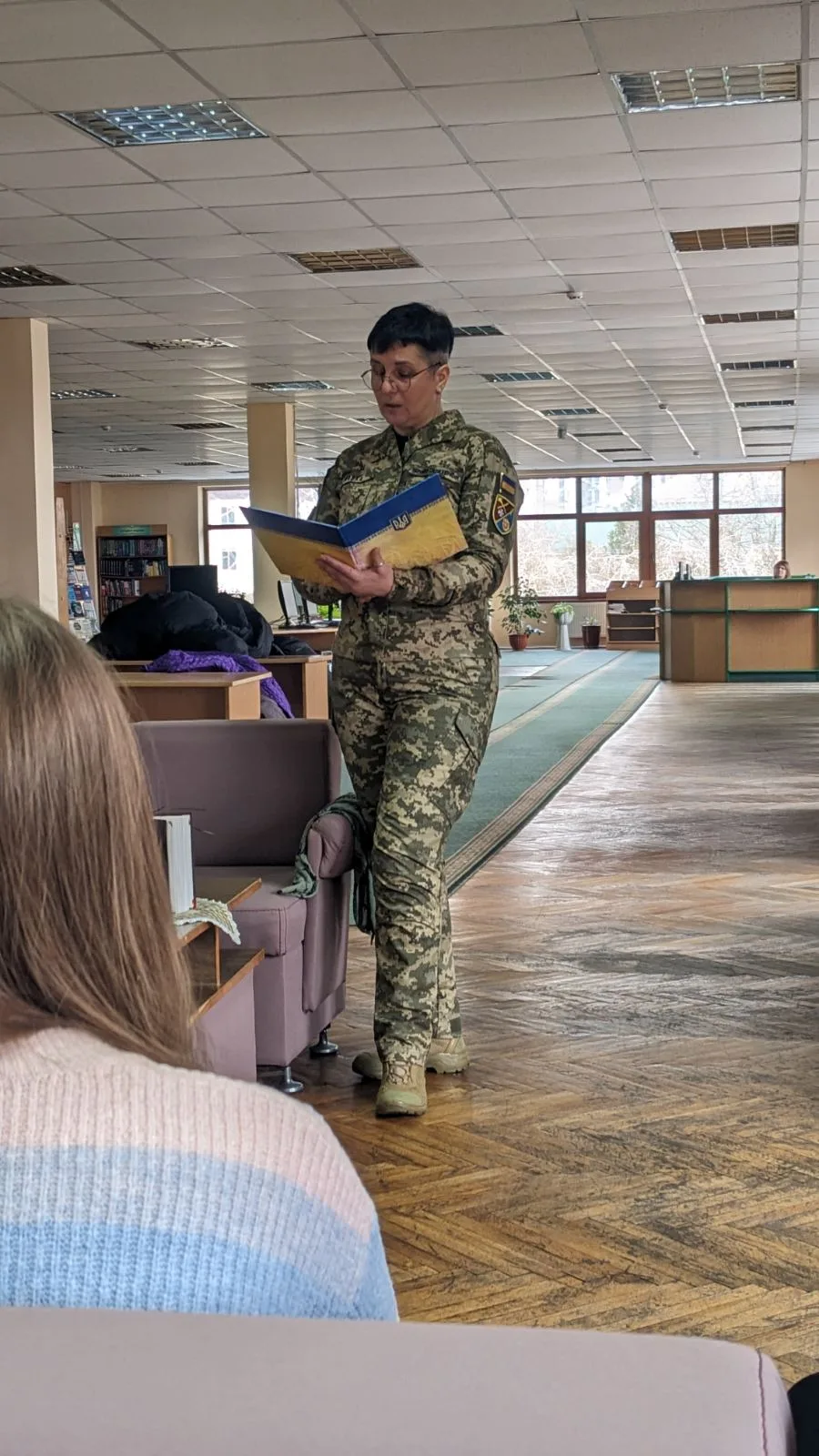 Захід пройшов у теплій, щирій атмосфері. Поетеса поділилася власними історіями з фронтового життя, розповіла про шлях до творчості та прочитала свої вірші, народжені війною. Її поезія — це голос сучасності, у якому поєднуються біль і сила, ніжність і незламність українського духу.