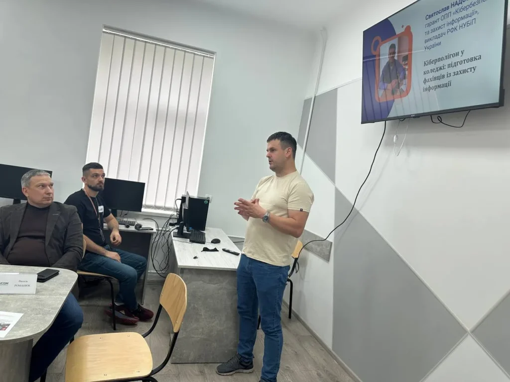 • Кіберполігон у коледжі: підготовка фахівців із захисту інформації. Доповідач: Надозірний С. В. гарант ОПП «Кібербезпека та захист інформації», викладач