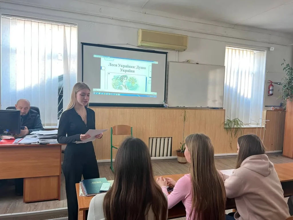 Виховна година розпочалася з поетичного слова – прозвучали рядки відомих творів письменниці, зокрема «Стояла я і слухала весну» та «Надія», які передають глибину її почуттів, віру в майбутнє та незламність духу.