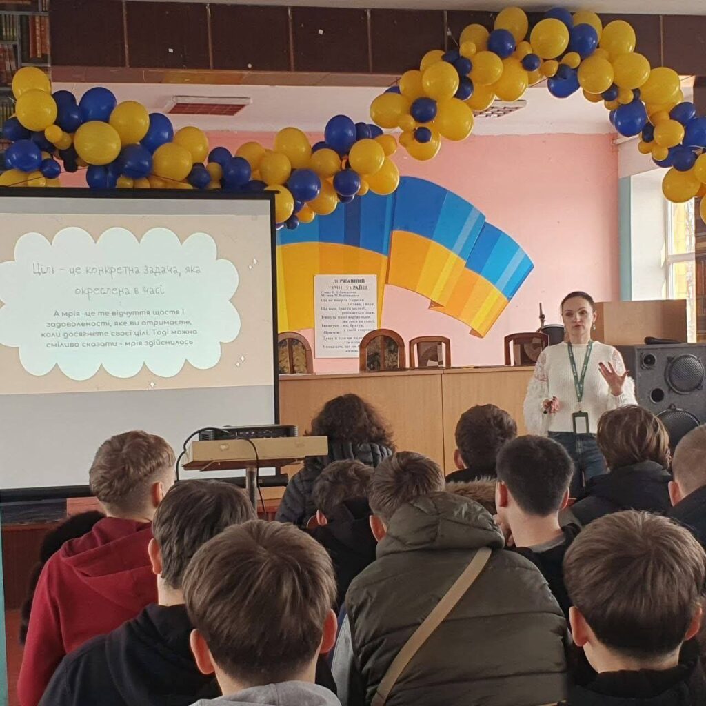 Захід розпочався з відвертої та надихаючої розмови про мрії та цілі. Галина запропонувала студентам поміркувати над власними прагненнями та допомогла зрозуміти принципову різницю між мрією як образом бажаного майбутнього та ціллю як конкретним планом дій. У чесному та відкритому діалозі обговорювалися практичні способи досягнення поставлених завдань, а також те, що робити після їх реалізації — адже досягнення однієї мети відкриває двері до наступної. Окремо приділили увагу першим крокам після завершення навчання: як вміло обрати вакансію, на що звертати увагу під час працевлаштування та як після певного часу роботи зрозуміти, чи відповідає обрана посада особистим цінностям і професійним прагненням.