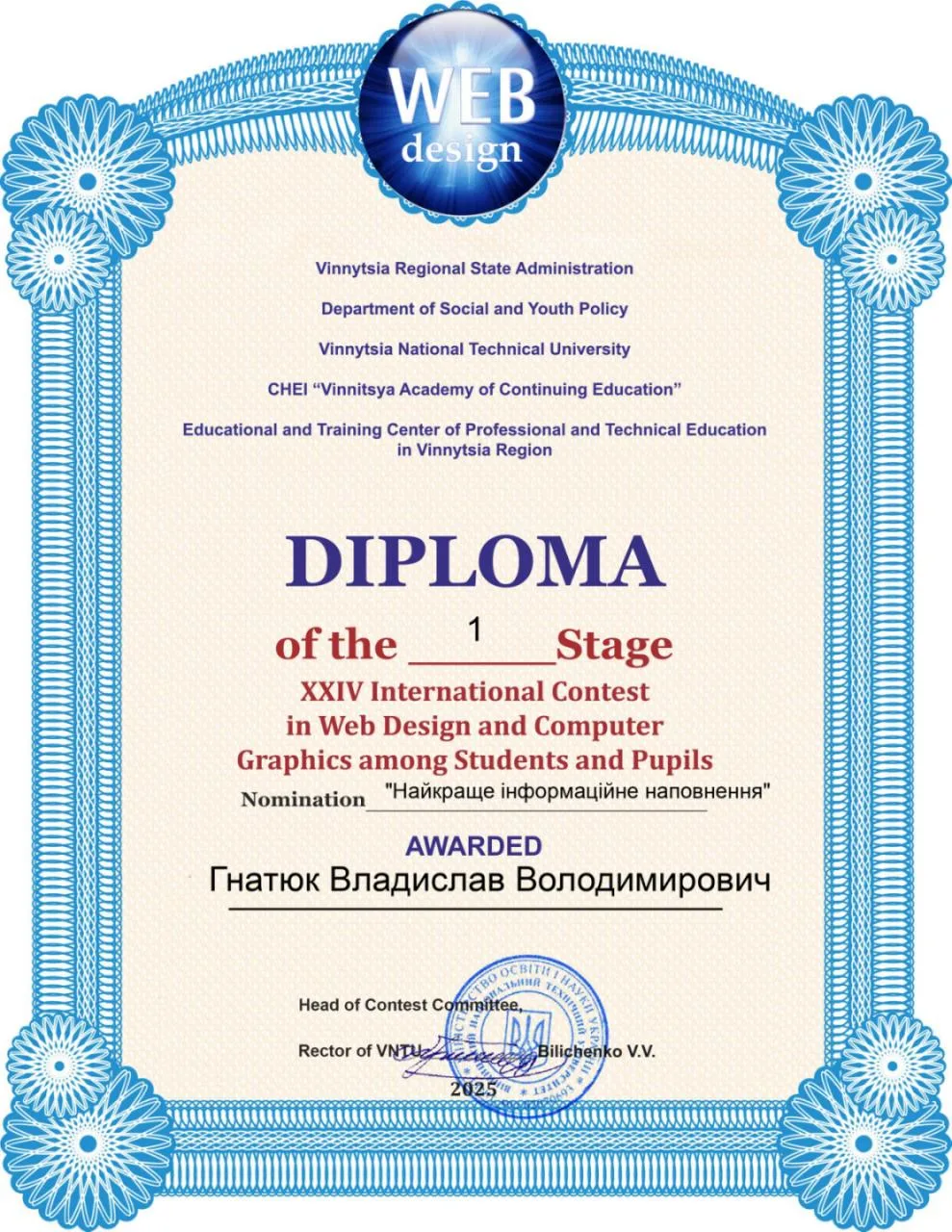 • Гнатюк Владислав Володимирович (група 41-ІП) — І місце у номінації «Найкраще інформаційне наповнення»