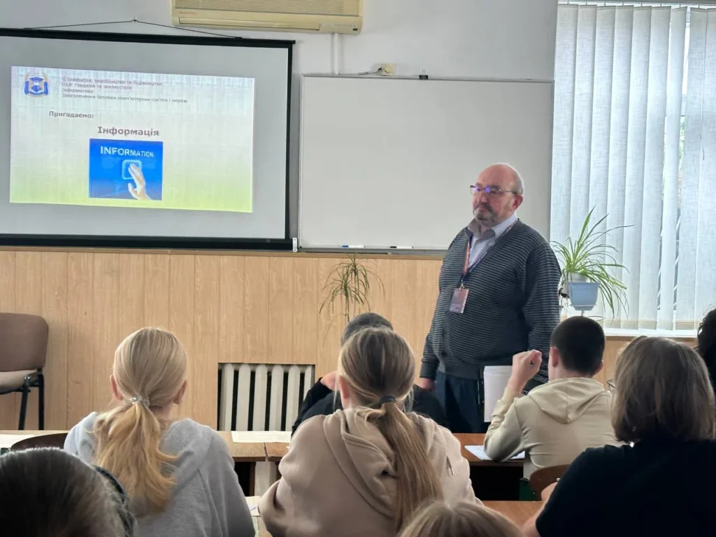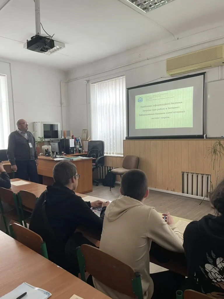 16.09.2025 року в рамках проведення тижня програмування та інформаційних дисциплін викладачем Новіцьким С.Б. було проведено відкрите заняття на тему «Проблеми інформаційної безпеки» для здобувачів освіти 11-З групи. Під час проведення заняття студенти були ознайомлені з проблемами безпеки інформаційних систем та шляхами їх подолання, суб’єктами кіберзахисту, рекомендаціями спеціалізованого структурного підрозділу Державного центру кіберзахисту та протидії кіберзагрозам, ознайомились з освітнім серіалом від Дія. Освіта «Базові знання з Кібергігієни».