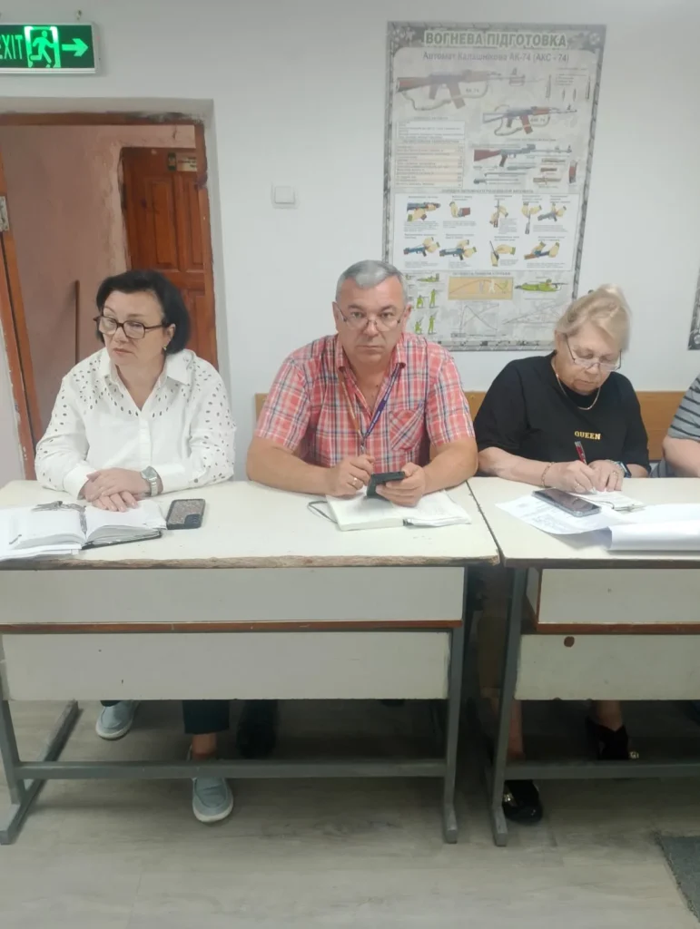 Викладачі предмету «Захист України» Volodymyr Khrystyanovych and Олексій ДОЛЯ проінформували про матеріально-технічне забезпечення предмету «Захист України» та базову загальну військову підготовку.