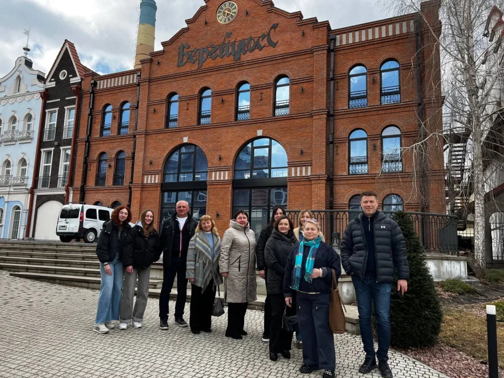 Екскурсія розпочалася з огляду архітектурного ансамблю колишнього заводу Герша Писарюка. Для майбутніх фахівців із землеустрою та геодезії було особливо цікаво побачити, як історична забудова кінця XIX – початку XX століття гармонійно вписалася в сучасний ландшафт міста.