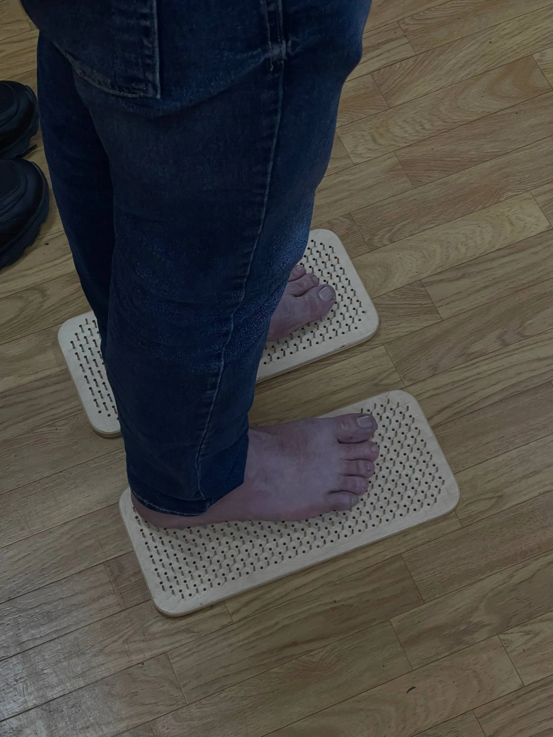 Після теоретичної частини настав час для найцікавішого — практики. Учасникам запропонували скористатися нагодою і випробувати власні сили, постоявши на дошках із різним рівнем складності: з кроком між цвяхами у 10 мм та 12 мм.