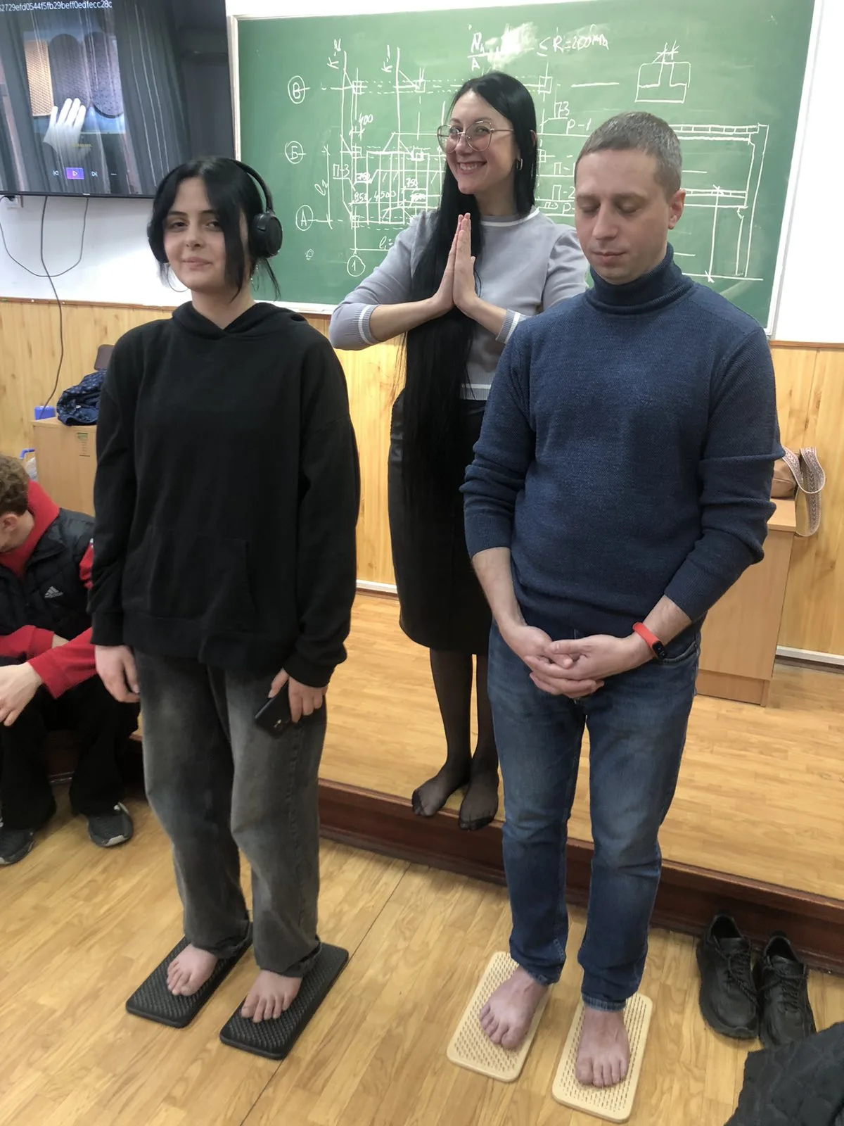 Реакція аудиторії була дуже показовою. Спочатку серед студентів відчувалися цілком природні вагання, адже стати голими стопами на цвяхи — це справжній виклик розуму. Проте цікавість і бажання перевірити свою витримку швидко взяли гору. Вже за кілька хвилин охочих відчути цей ефект на собі виявилося напрочуд багато! Кожен, хто наважився зробити цей крок, отримав унікальний досвід концентрації та подолання внутрішніх бар’єрів.