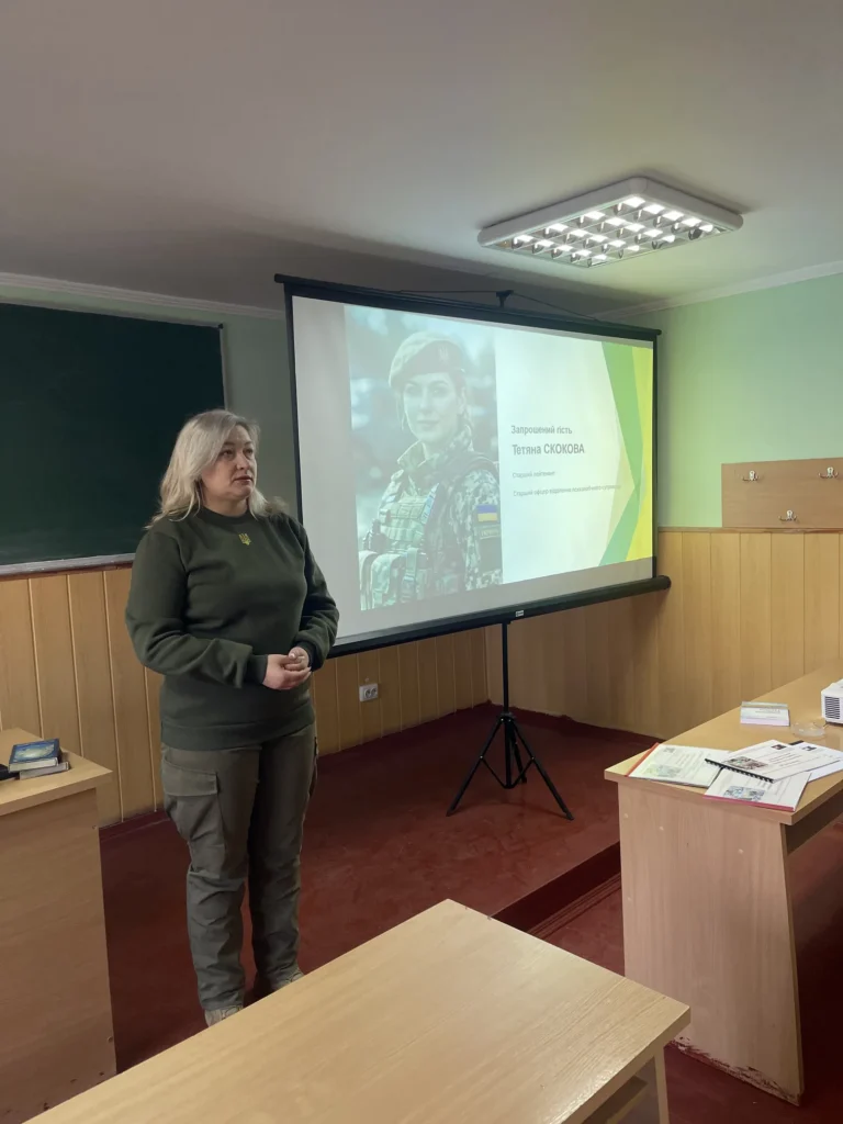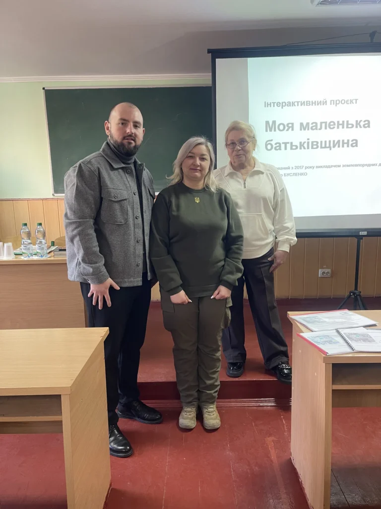 Під час проведення тижня землевпорядних дисциплін дляздобувачів освіти проведено виховний захід в рамках проєкту «Моя маленька Батьківщина», який ініційований з 2017 року викладачем Галиною Бусленко відбулася зустріч-діалог студентів із військовою Збройних сил України старшим лейтинантом, старшим офіцером відділення психологічного супроводу Тетяною СКОКОВОЮ про цінність української землі, її захист та відбудову після війни.