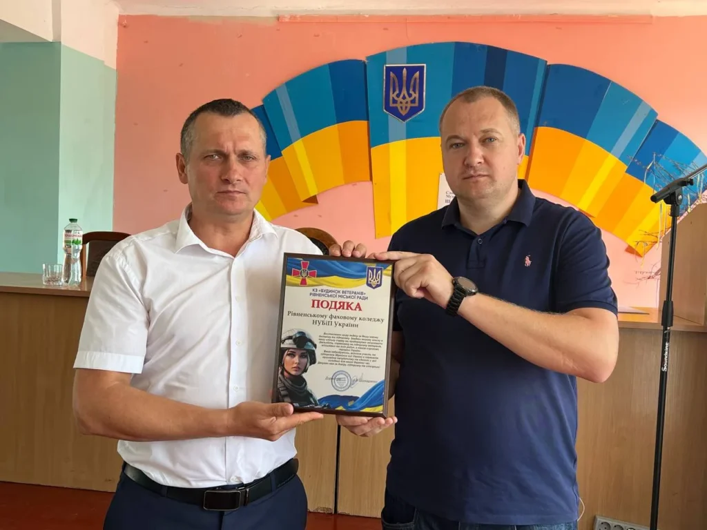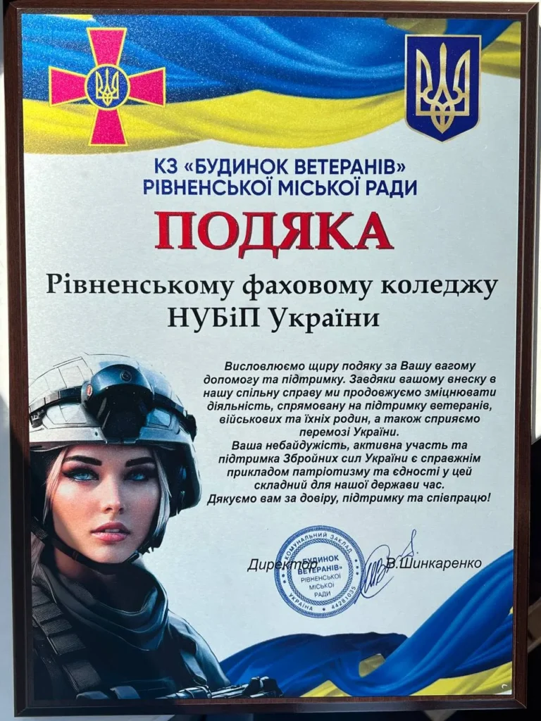 Окрім того, директор вручив подяку Новаку Юрію Петровичу, викладачеві інформаційних дисциплін та активному учаснику волонтерського руху у коледжі. Варто відзначити, що цю подяку КЗ «Будинок ветеранів Рівненської міської ради» адресував усьому колективу коледжу за вагому допомогу та підтримку ЗСУ.