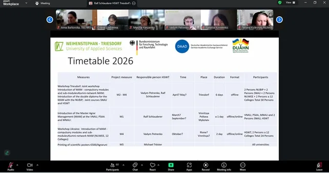 Відбулася робоча зустріч, присвячена підведенню підсумків за 2025 рік у реалізації міжнародного проєкту DAAD «Deutsch-Ukrainisches AgrarHochschulnetzwerk 2025–2029». Захід став майданчиком для обговорення досягнутих результатів, обміну досвідом та визначення подальших кроків співпраці між українськими та німецькими закладами освіти.