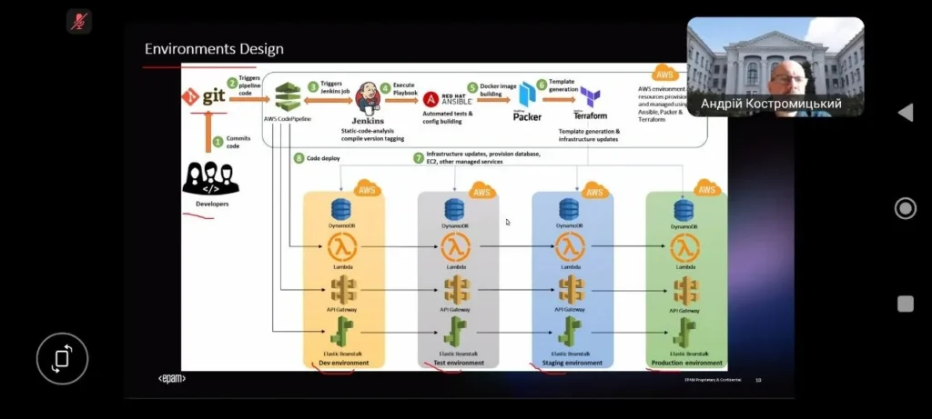 Відкриваючи свій виступ, Андрій Костромицький зафіксував ключову проблему: навчальні програми об’єктивно відстають від темпів розвитку індустрії. Хмарні технології, DevOps-практики та інструменти штучного інтелекту змінюють вимоги до фахівців швидше, ніж оновлюються навчальні плани. Результат – випускники технічних спеціальностей нерідко стикаються з очікуваннями роботодавців, до яких університет їх просто не готував.
